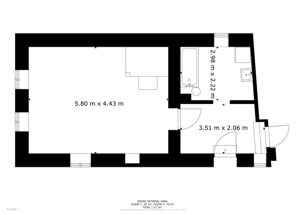 Kanalizace je vedená formou trativodu a venkovní WC je suché. Chalupa je připojena k vodovodní síti a rozvody jsou po celém 1.NP.