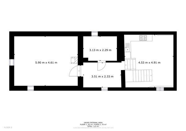 Chalupa má obdélníkový půdorys s mansardovou střechou o celkové užitné ploše 133 m2.
